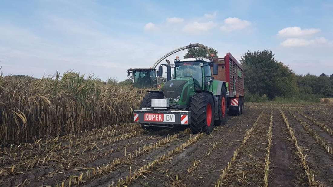 Voor het maishakselen van o.a. mais hebben we diverse machines en uiteraard tracktoren met dumpers voor het vervoer. Als het nodig is gaan we door tot in de late uurtjes!